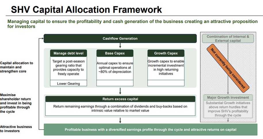 Currently, the market refuses to price in Select’s capacity to generate meaningful Free Cash Flows into the future. This is evidenced by the discount of SHV’s stock price to the market value of its NTA.